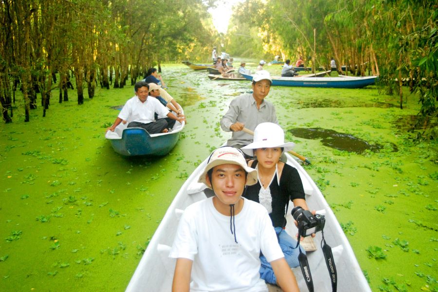 - Rừng tràm Trà Sư (An Giang): Thuyền lướt giữa rừng tràm ngập nước, view cực kỳ thơ mộng.